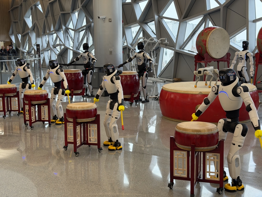 灵犀X2机器人组队表演。